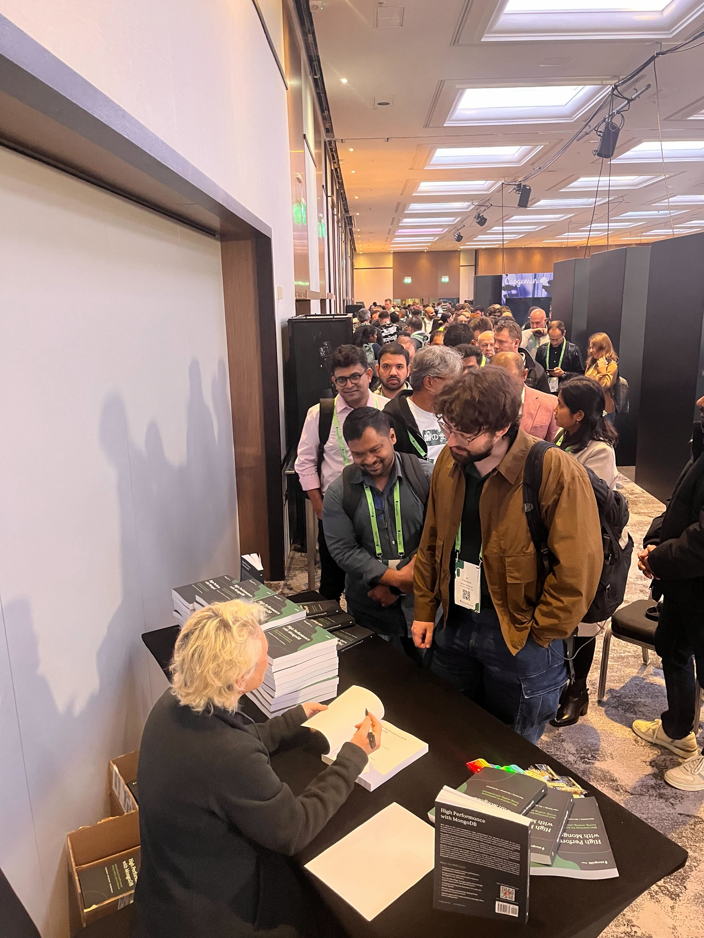 Asya was signing books for a long line of MongoDB London.local 2025 attendees
