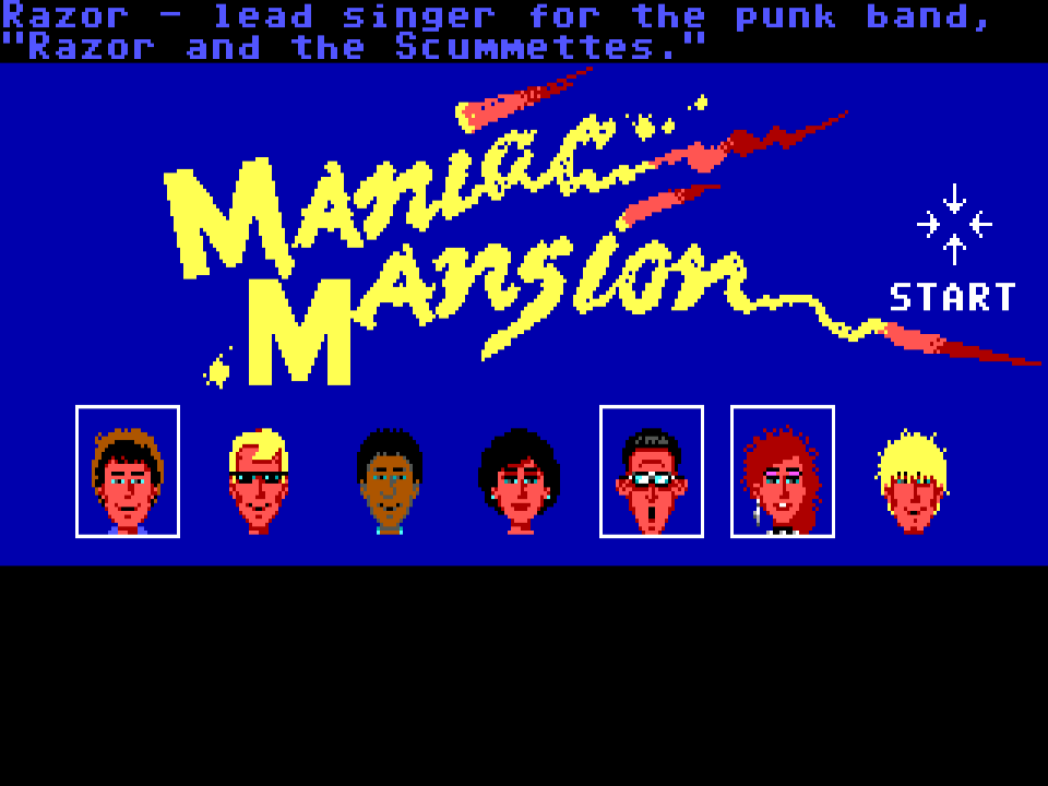 Maniac Mansion is a 1987 graphic adventure video game developed and published by Lucasfilm Games. It follows teenage protagonist Dave Miller as he attempts to rescue his girlfriend Sandy Pantz from a mad scientist, whose mind has been enslaved by a sentient meteor. The player uses a point-and-click interface to guide Dave and two of his six playable friends through the scientist’s mansion while solving puzzles and avoiding dangers. Gameplay is non-linear, and the game must be completed in different ways based on the player’s choice of characters. Initially released for the Commodore 64 and Apple II, Maniac Mansion was Lucasfilm Games’ first self-published product.