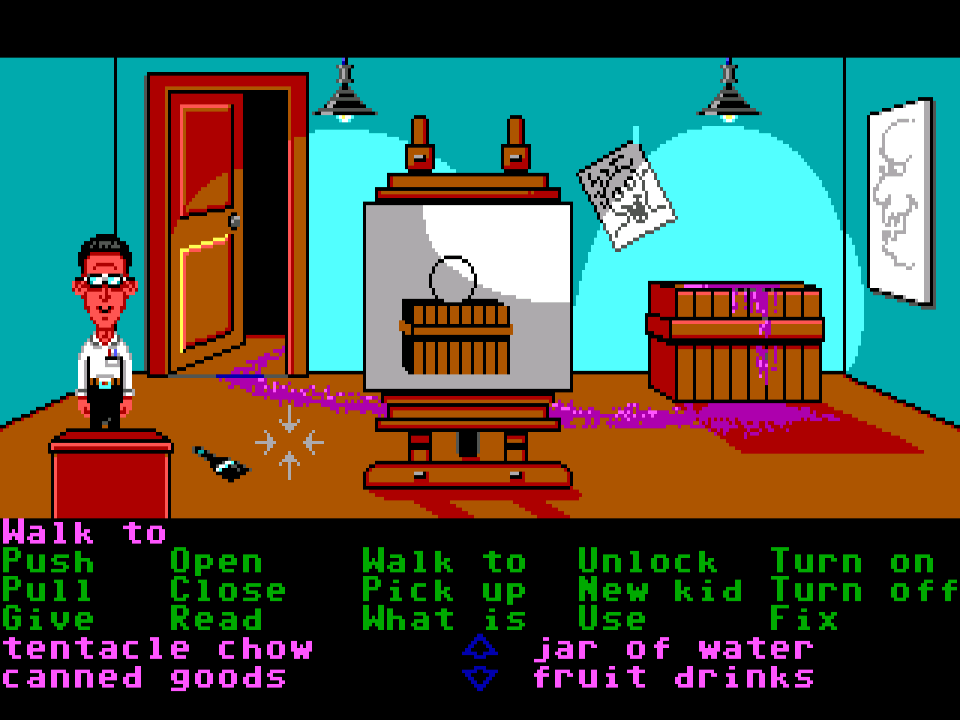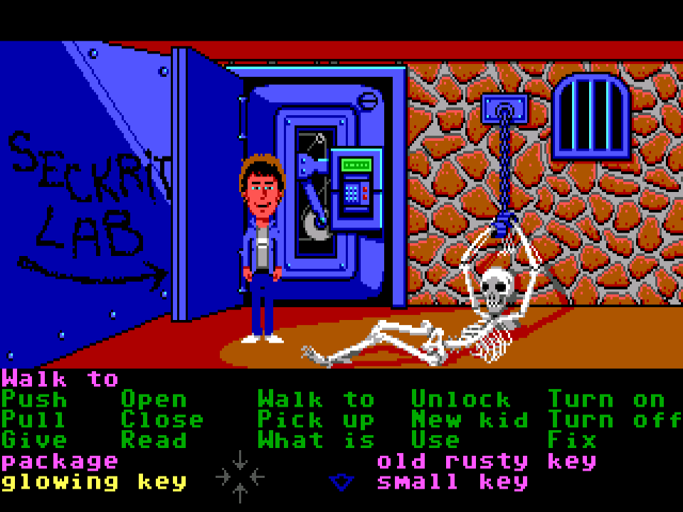 Future games like Day of the Tentacle would refine the verb list and condense multiple verbs into one, but given Maniac Mansion set the tone for these future games, the lesser used verbs like FIX and TURN OFF don’t really get in your way or detract from the experience.