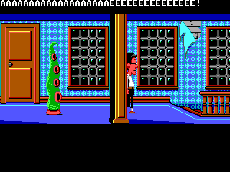 You do get occasional sound effects (doors opening/closing) and some select interaction (playing the records or the piano), but aside from that the adventure is pretty quiet. I played through the DOS v2 version of the game (see “The many versions of Maniac Mansion: a dorky breakdown” for more info), so it’s possible there was more music/sfx in other releases, but I don’t believe this was the case.