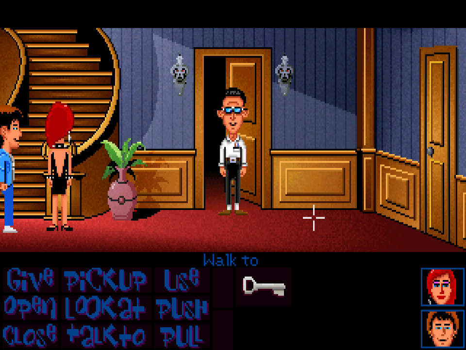 This is extremely useful when you’re pixel hunting in a dark room for a light switch, which is a more frequent event in this game than you might think. What is strangely absent from the verb list is a way to TALK to other characters, but given you’re trying to avoid the Edison’s, you’re probably not missing out on much.