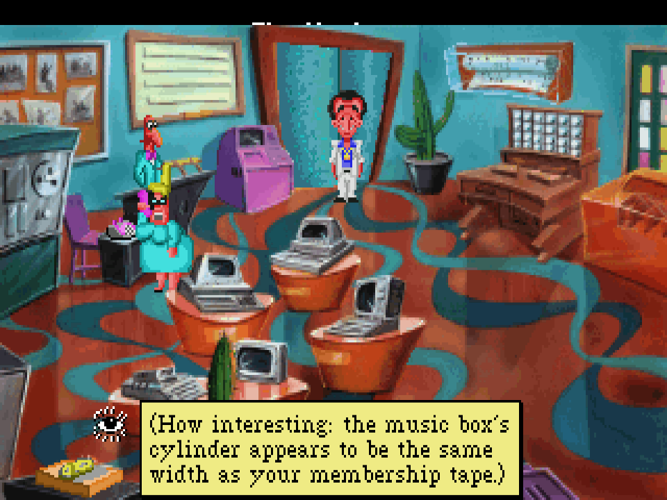 While exploring each location you’ll need to typically perform some inventory-based puzzle to progress, and the game makes it pretty obvious what the solution to each puzzle is. Where Leisure Suit Larry 3 might have had some extremely obtuse puzzles (like making the skirt), Leisure Suit Larry 5 swung the other way towards being a bit too easy.