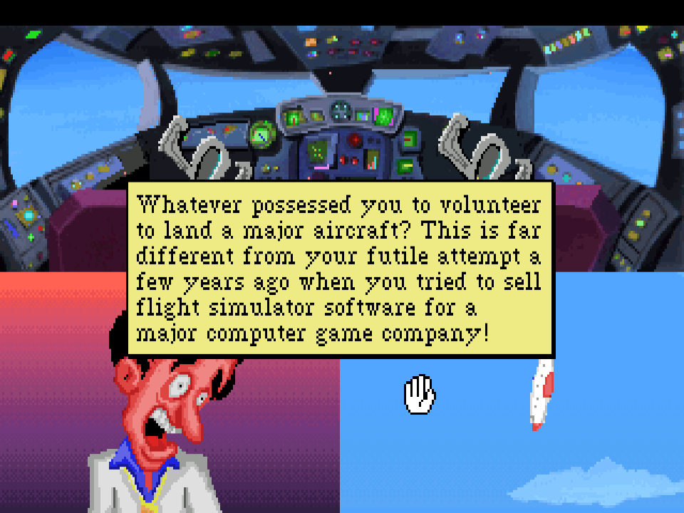 [by skipping directly to LSL5] Suddenly I was completely freed from the restraints of the Larry 3 ending. I could have the new game begin anywhere. The idea was wacky, silly, dumb in a perfect “Larry-esque” way. And, it solved the “mind share” problem–how to grab people’s attention and make them think about the next Larry game and had they missed something?