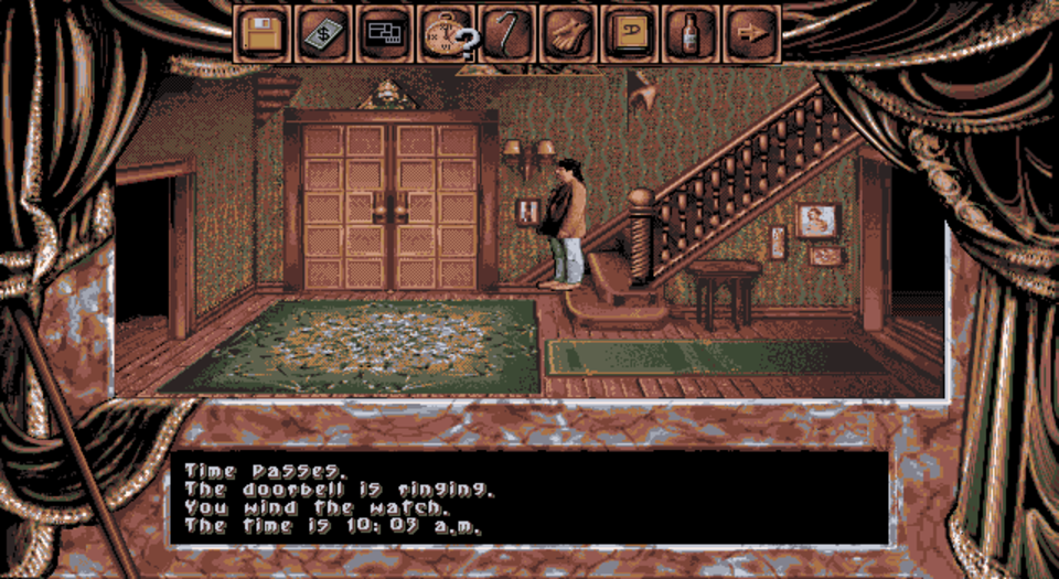 The game’s Quick Reference Card tells you you can press the T key at any point to advance time to the top of the next hour in case you find yourself “with lots of time to kill”. They allude to the fact you need to wait around for certain events to trigger, but not what they may be, when they’ll occur or on what screens.