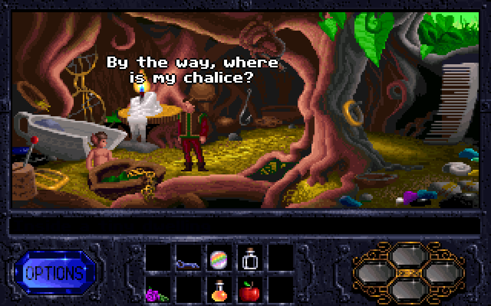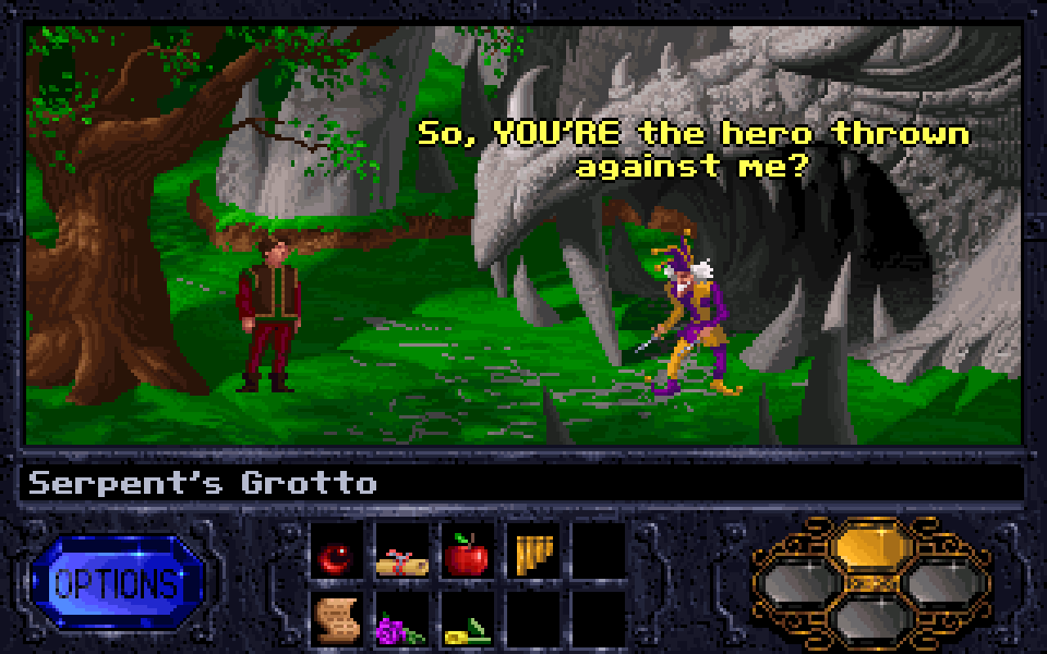 The first installment in the Legend of Kyrandia series is nothing groundbreaking. Some of the writing is clever and I really like the main villain, though he doesn’t really do anything during the game other than show up a couple times to delay your progress.
