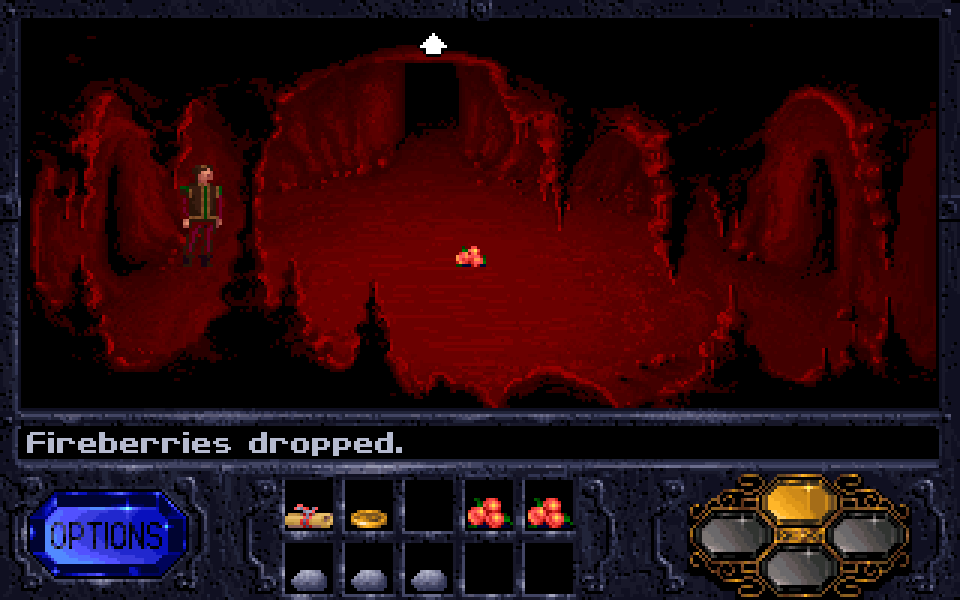 The ScummVM wiki helpfully shares a map of the caves, so I ended up using that to get through this section a bit quicker. Typically this type of spelunking involves getting 3 berries, going to one room, dropping a berry, saving, then going to the next room - rinse - repeat. If you run out of berries and die in the next room, reload and pick a different room.