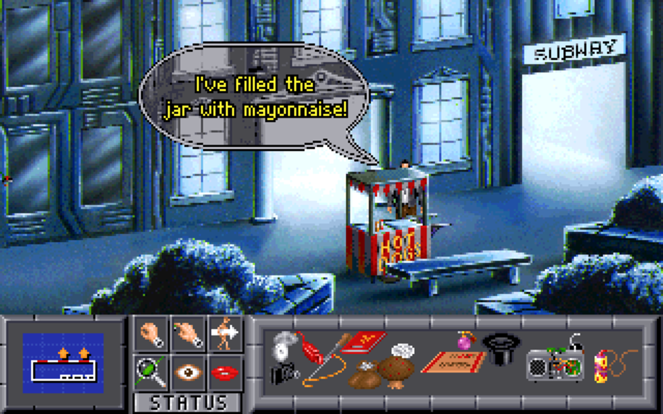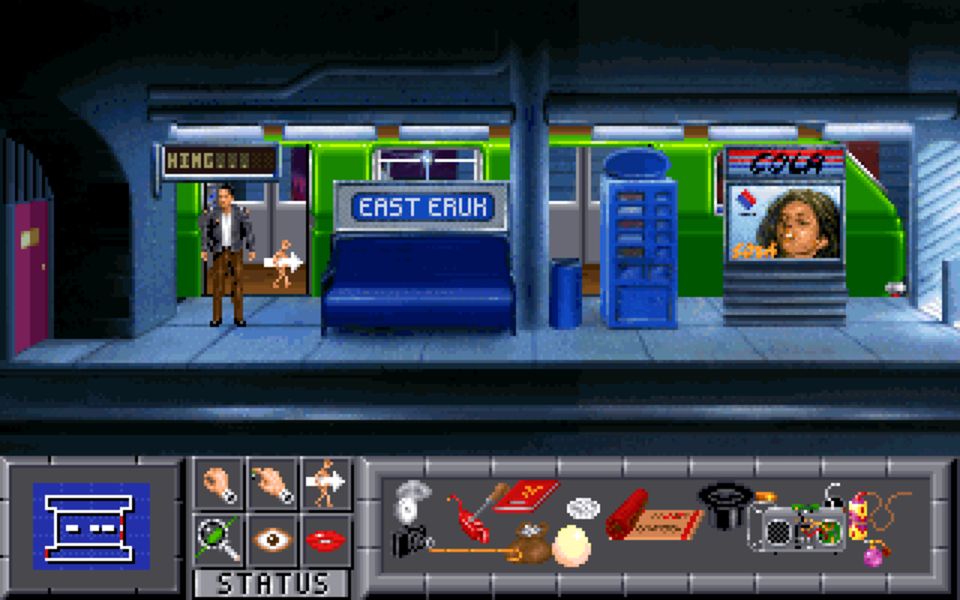 One issue I had with the subway was that I found myself unable to progress the first time I played this game. Every time the subway car would stop and open the doors I clicked like a maniac to get Jack to board the train cycling through every verb/action available … but nothing worked. It turns out that this is a known (but poorly documented) issue you’ll run into if playing the game via DOSBox.