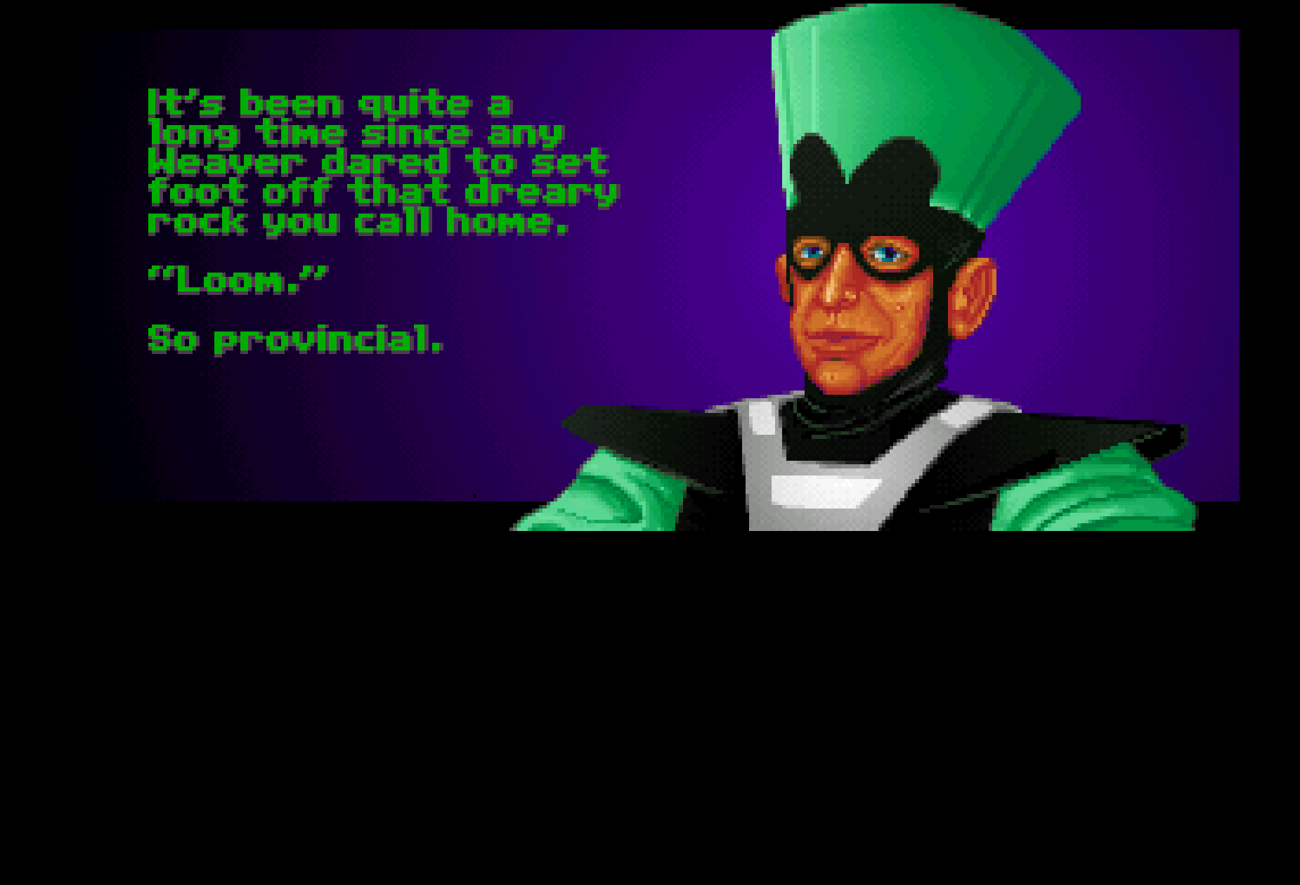 Loom is a 1990 fantasy-themed graphic adventure game by Lucasfilm Games. The project was led by Brian Moriarty, a former Infocom employee and author of classic text adventures Wishbringer (1985), Trinity (1986), and Beyond Zork (1987). It was the fourth game to use the SCUMM adventure game engine, and the first of those to avoid the verb–object interface introduced in Maniac Mansion.