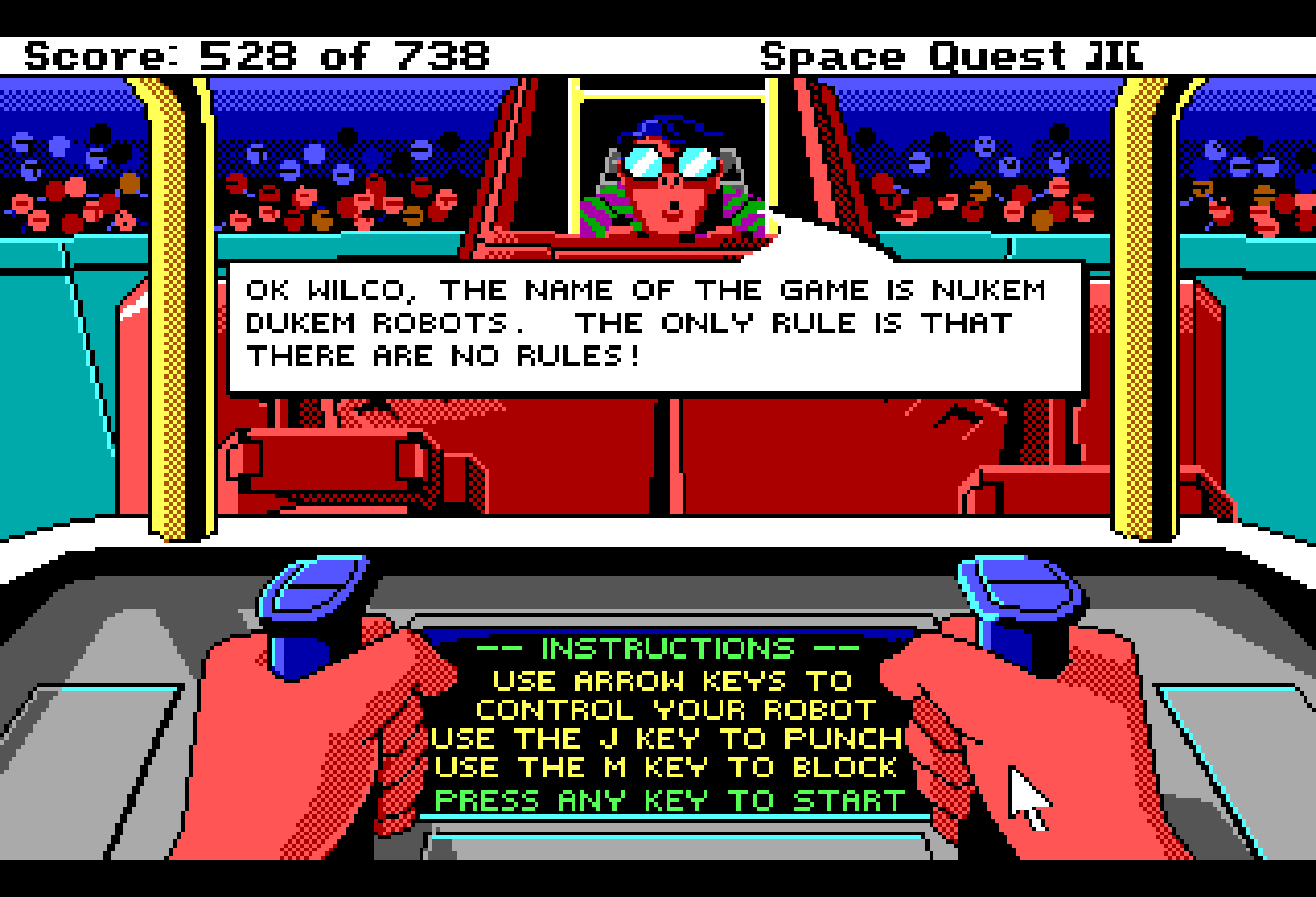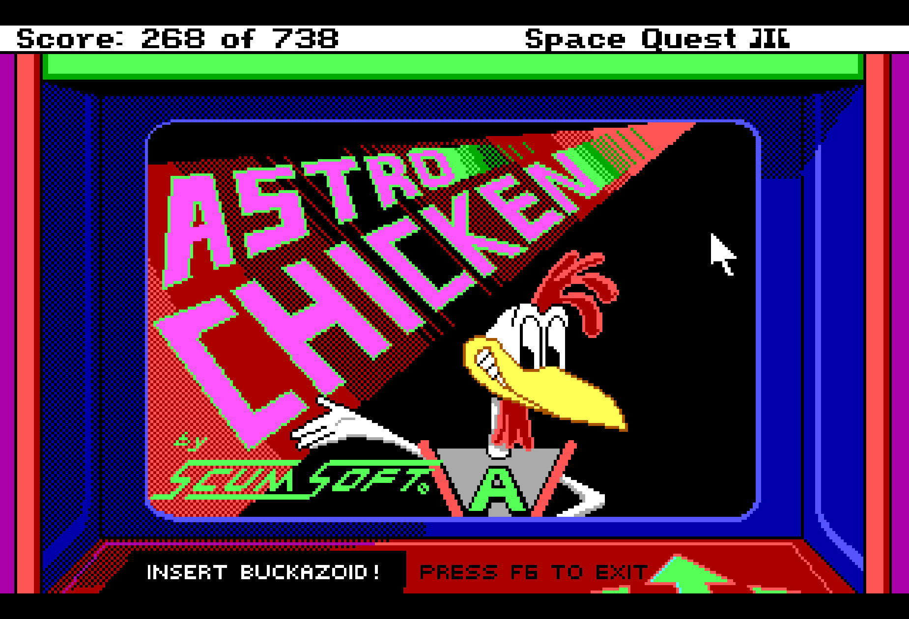 Though I rated Space Quest: The Sarien Encounter pretty highly, it’s primitive and less accessible than this sequel. If you want to try your hand at a parser-driven adventure game I’d highly recommend Space Quest III.