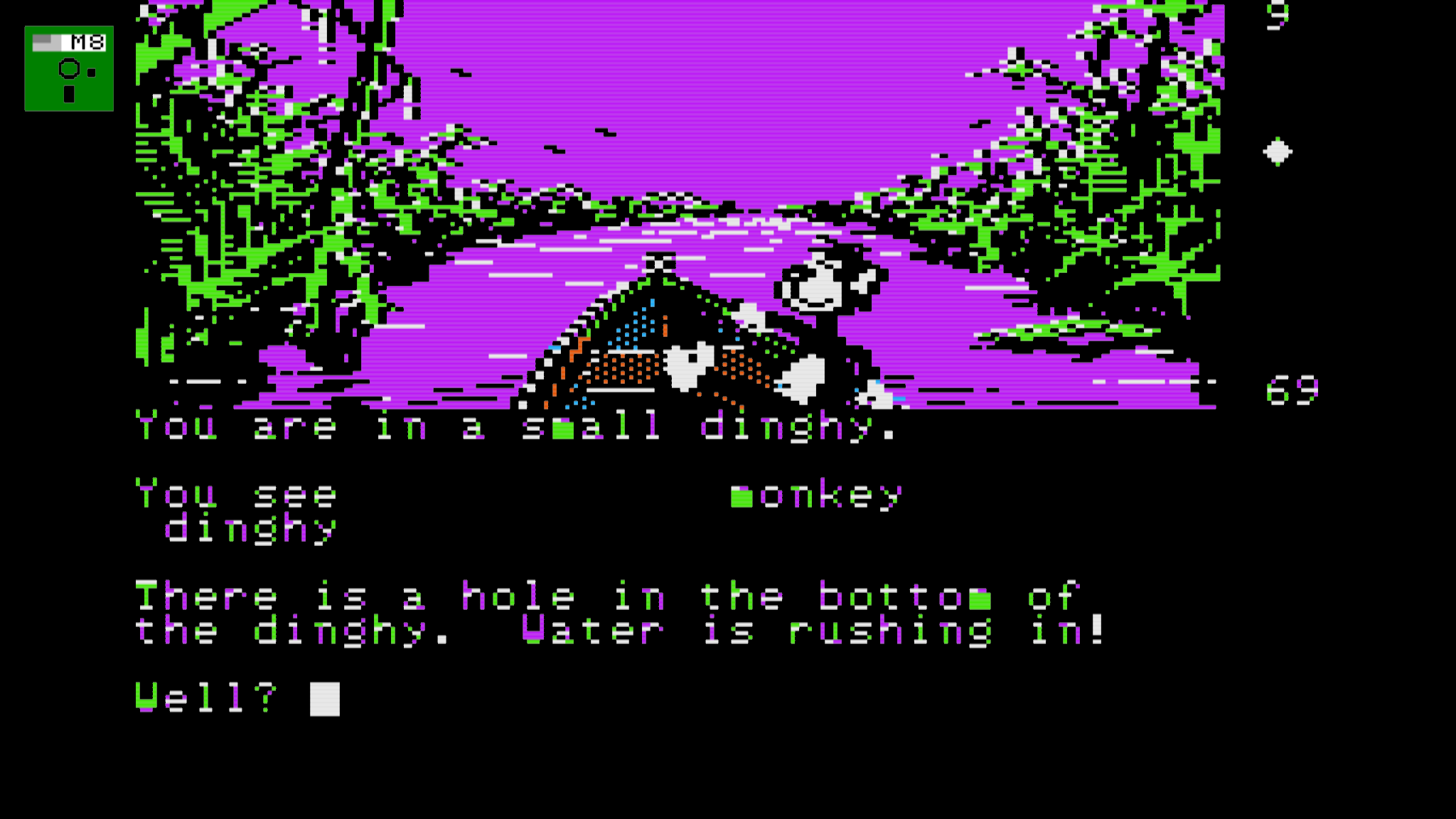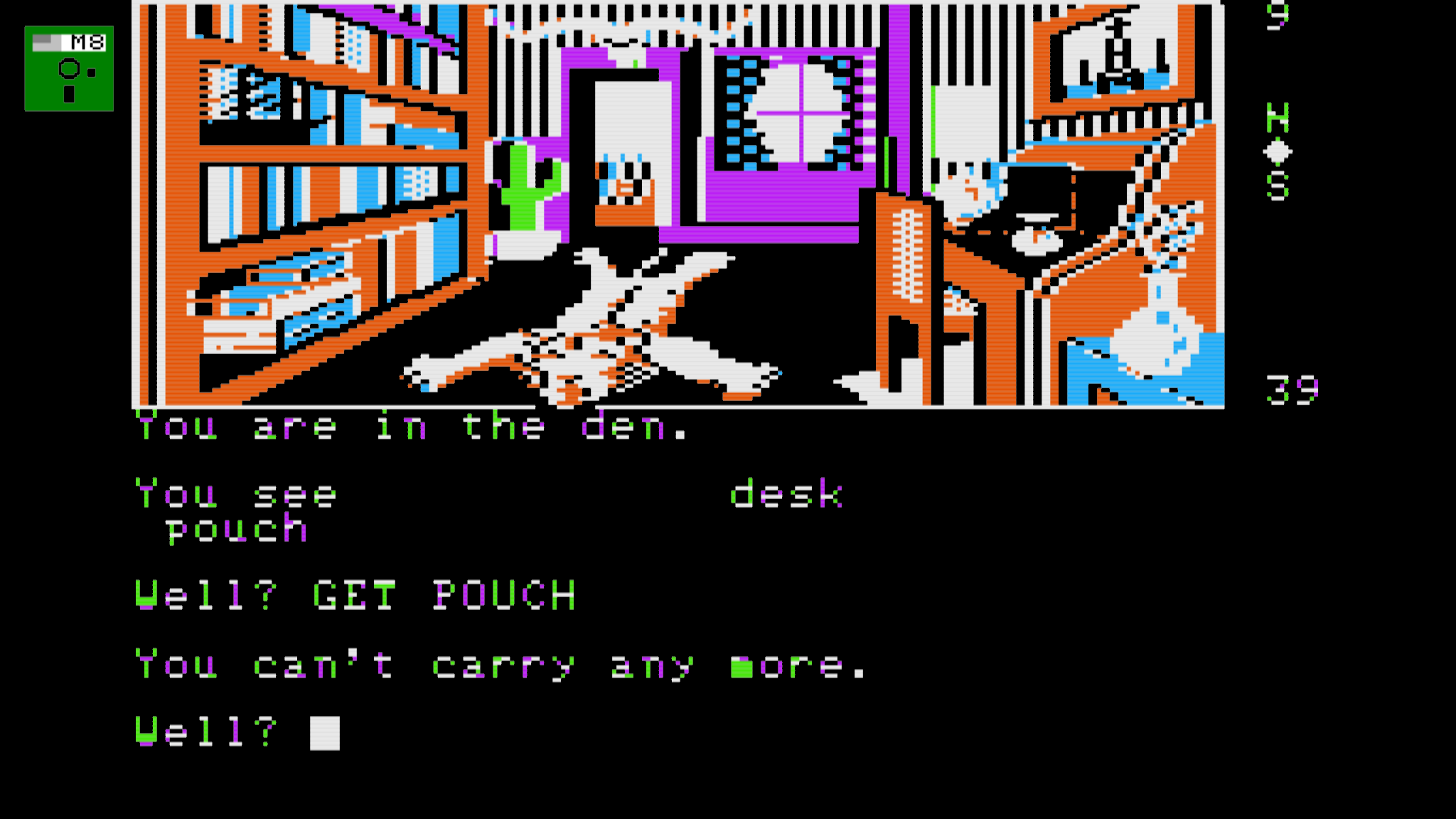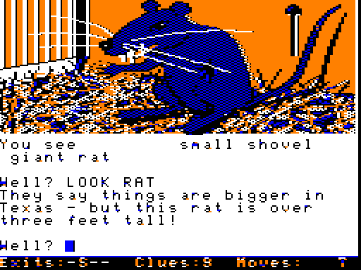 You can type CLUE on most screens to get some help. I definitely found myself doing a “save-clue-load” loop on more than one occasion to move the game along.