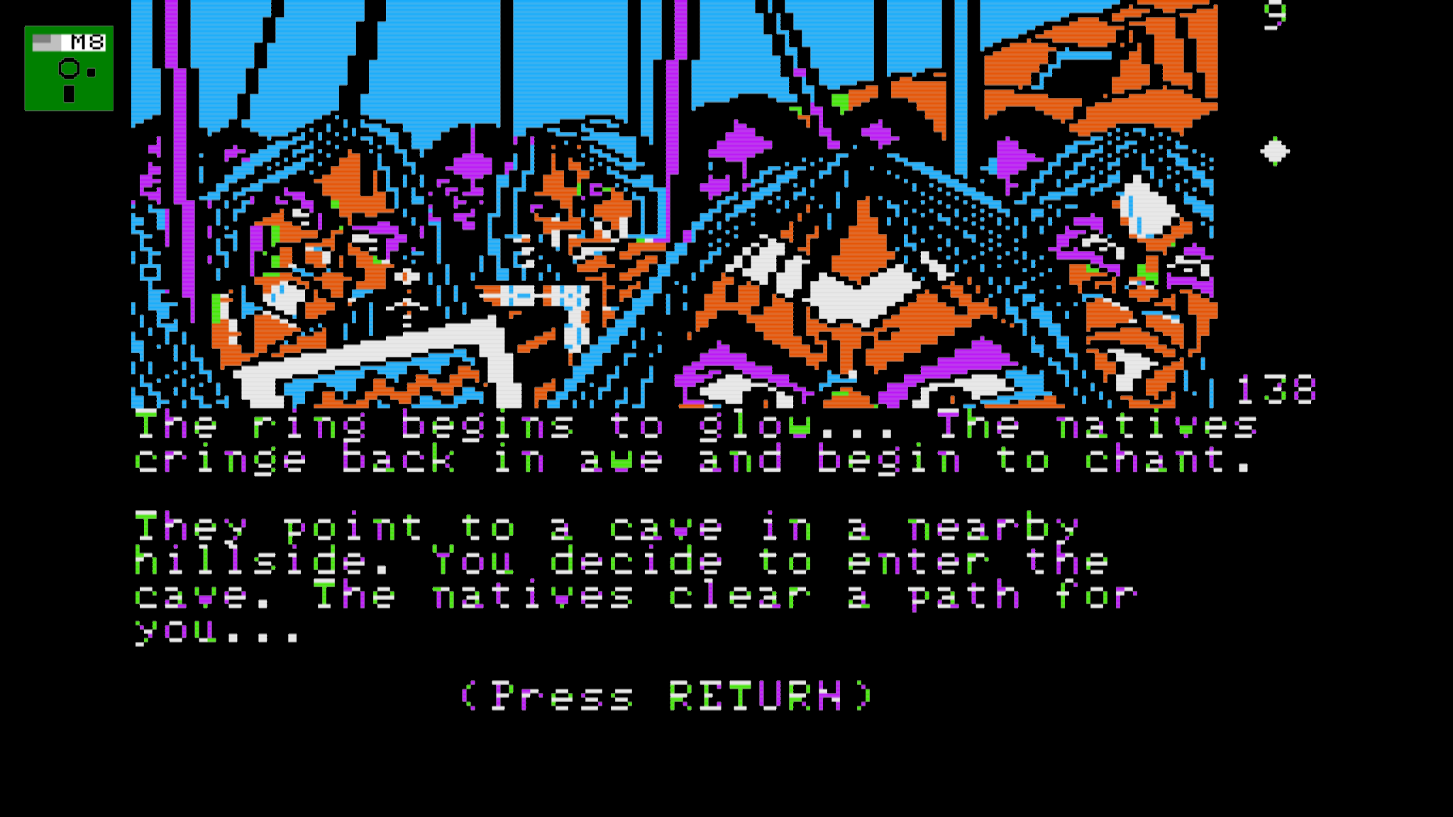 Other than the intro music and a couple segments where you have to play a bugle there isn’t much in the way of sound effects or music. The graphics are decent (for the time) and I had a lot of fun mucking around with a TRS-80 emulator - but I don’t think there’s a modern audience for this title.