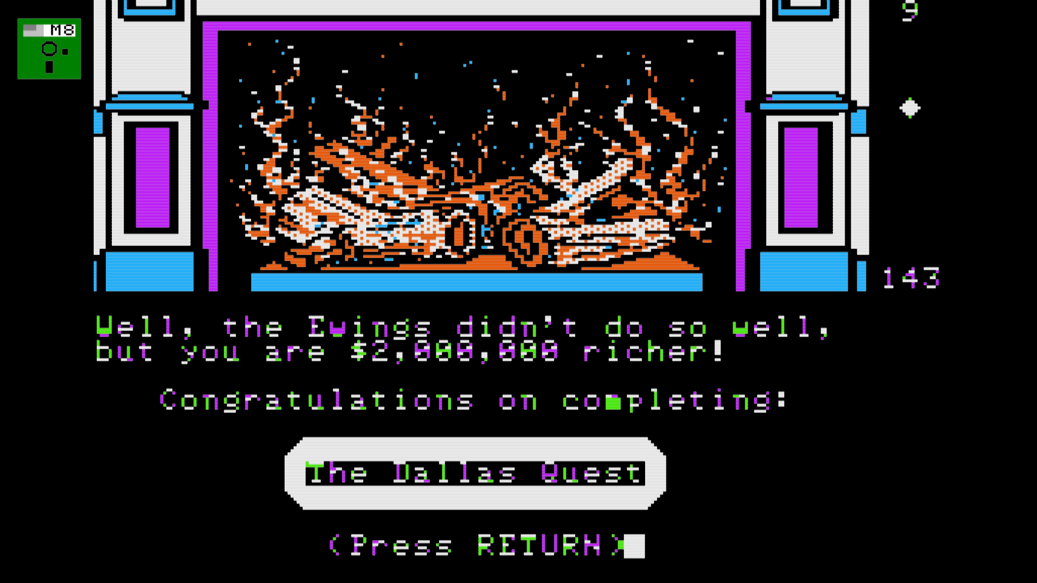 The Dallas Quest is interesting in that it was an early adventure game based on a popular TV show (at the time). These types licensed tie-ins are usually reserved for movies (like Labyrinth: The Computer Game) so I guess that should speak to how popular this show must have been.