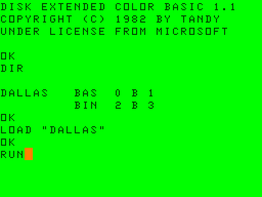 The Dallas Quest is a graphic adventure game based on the television soap opera Dallas. The game was programmed by James Garon for the TRS-80 Color Computer and published by Tandy Corporation in 1984. It was the second game in the “Animated Adventure” series, following The Sands of Egypt, and uses the same split-screen display. Datasoft published versions for the Apple II, Atari 8-bit family, and Commodore 64 in the same year.