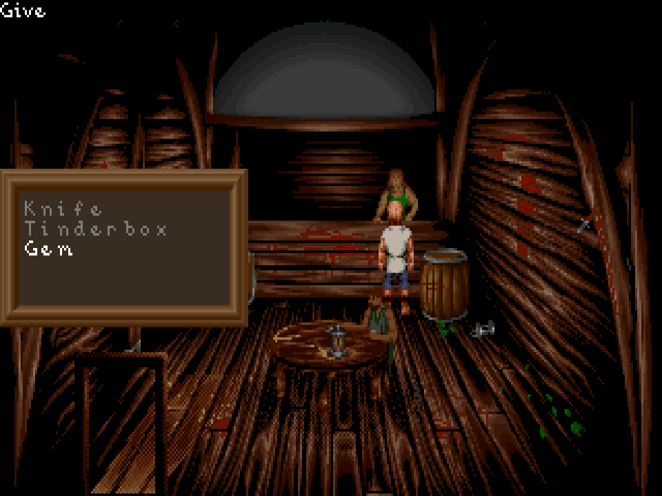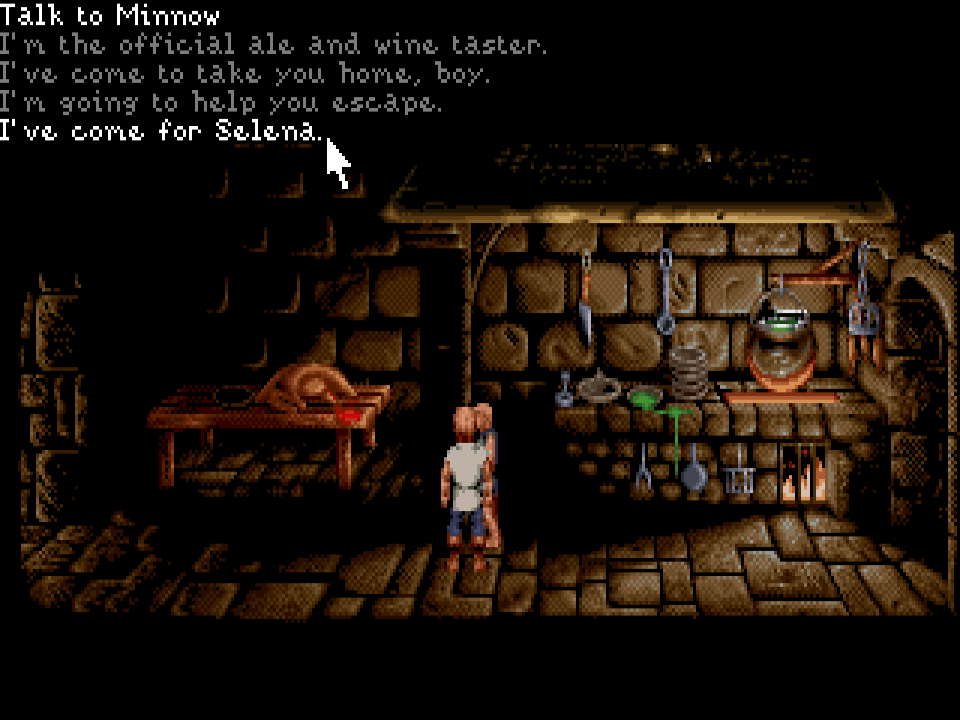 The story progresses through a series of interactions with characters in town, then in the castle. These interactions are navigated using dialog trees, which are pretty common for adventure games of this era.