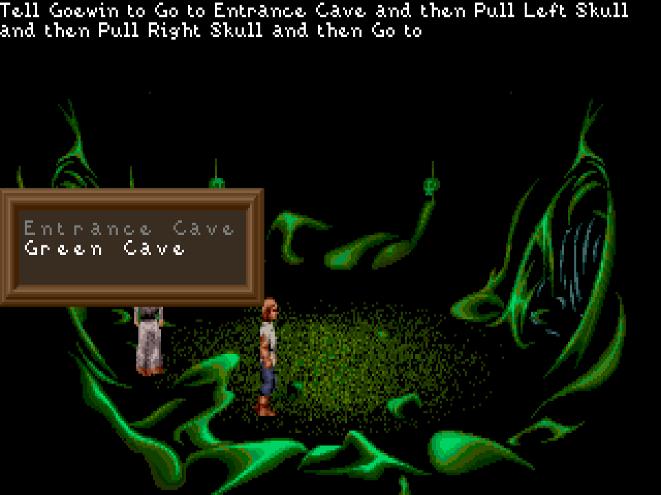 Command chaining is required at one point in a cave where pulling certain skulls will open doors, but you need to coordinate these actions from different rooms. You’ll need to tell your companion NPC to first go to a different room, then pull a skull, then the other, then go to yet another room.
