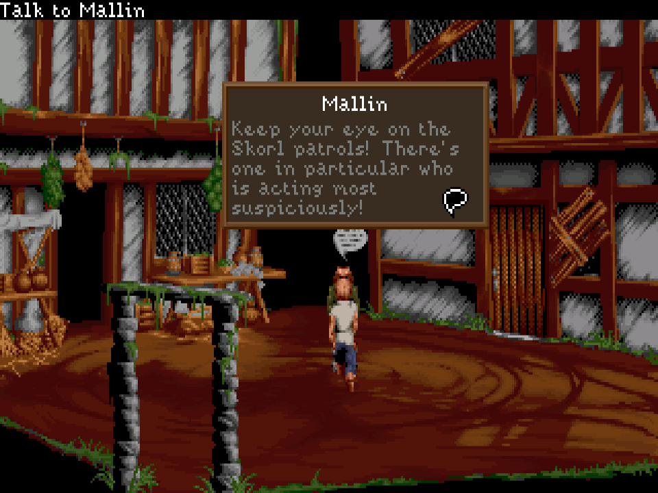 These NPCs include the Skorl, and to advance to the castle you’ll need to talk to Mallin to get a clue that there’s a Skorl acting suspiciously. When this happens you need to find a Skorl NPC and follow him around until he goes into a shop, where you can spy on him through the window.
