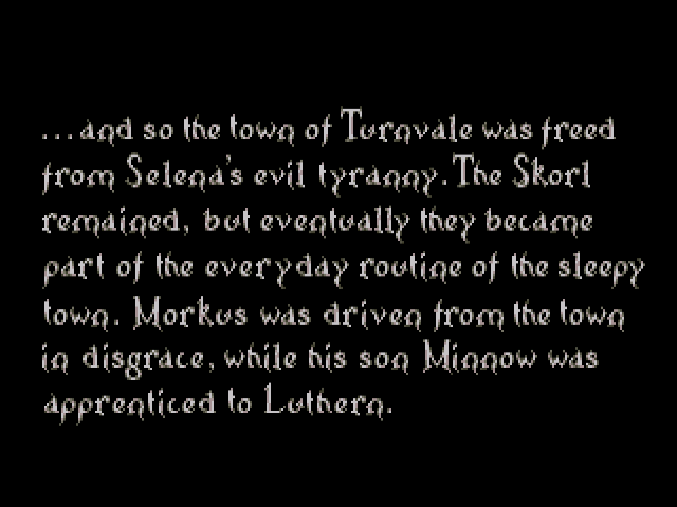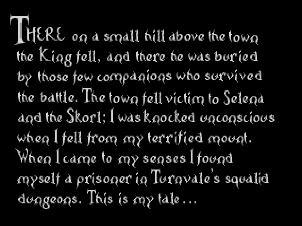 The medieval town of Turnvale has fallen into the hands of the evil sorceress Selena. She is controlling an army of an orc-like warrior race Skorl, who serve her with devotion. The Skorl hate humans and have terrorized the town and the nearby land. Diermot is an ordinary fellow who was captured by the Skorl and thrown into prison. His first task will be to escape. After gaining his freedom, Diermot will also have to find out how to liberate his entire homeland from the clutches of the villains.1