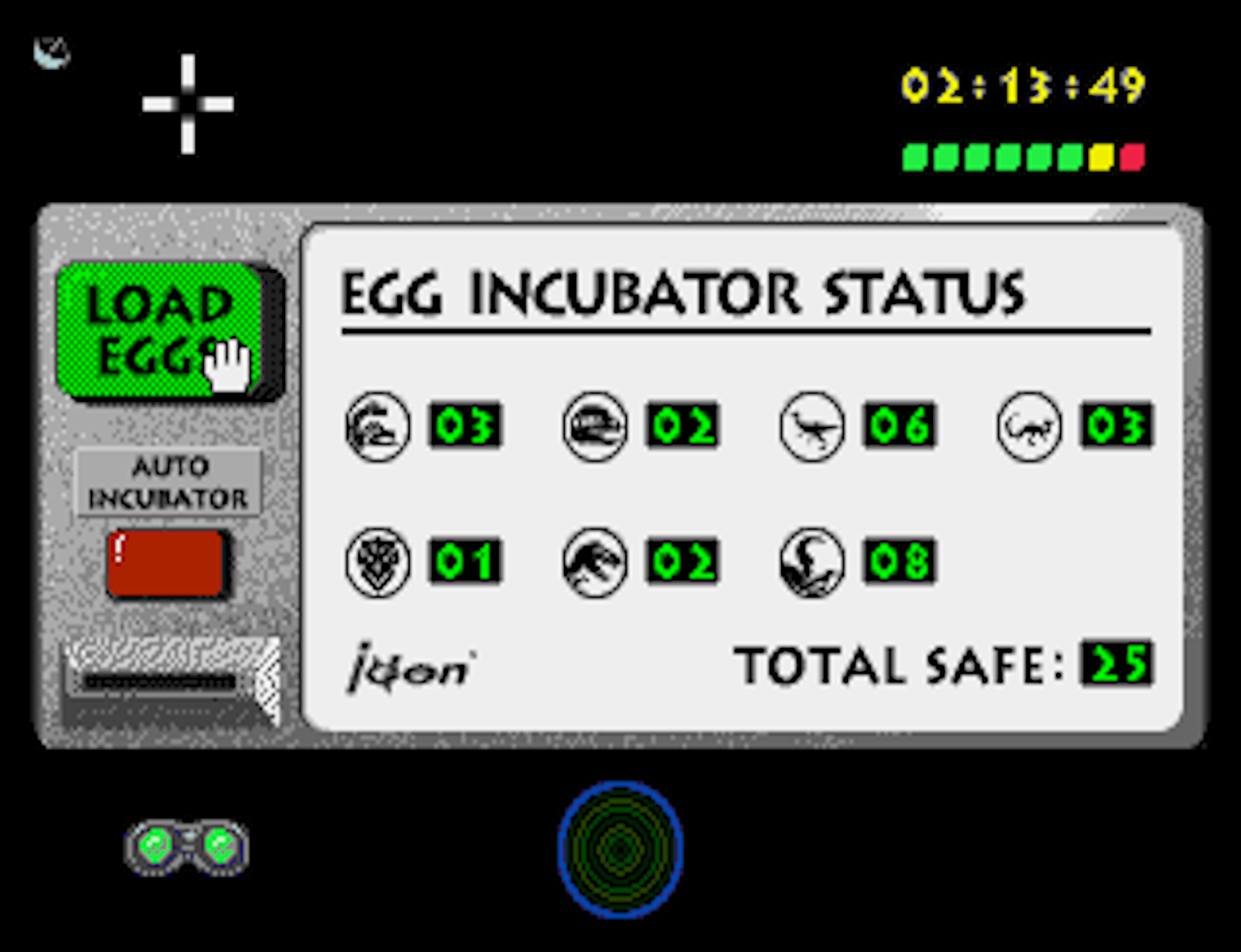 If you’ve picked up any dinosaur eggs it will also let you know. This reminder is important because the goal of the game is to get those eggs back to the incubator. If you hold onto the eggs for too long, the dinosaur inside dies.