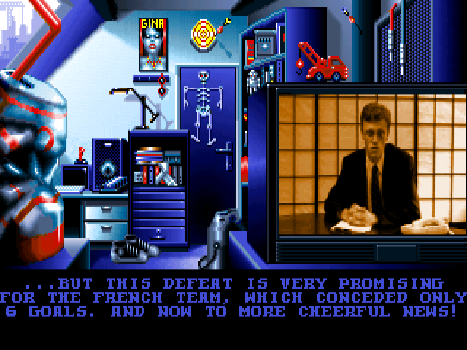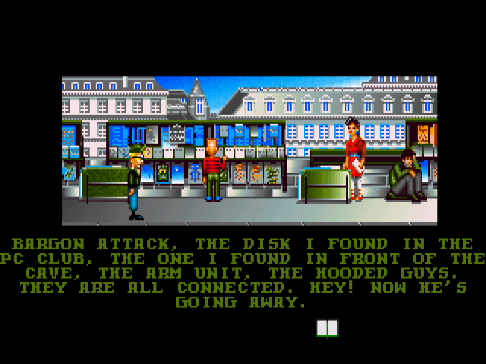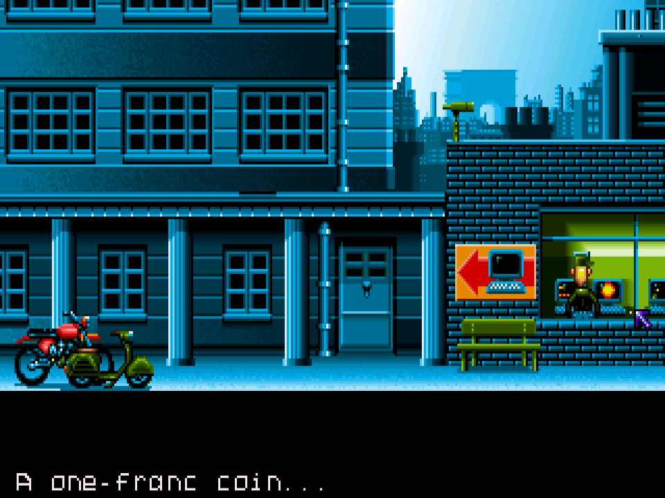 The gameplay is a mix of science fiction, cyberpunk and comedy elements. It takes place in the near future when an alien race named Bargon conquered the Earth and enslaved its people. You take a role of the young programmer who decides to put an end to the cruel aliens. You’ll travel through 20 or so locations. Each one consists of 1 to 3 screens, similar to other Coktel games.