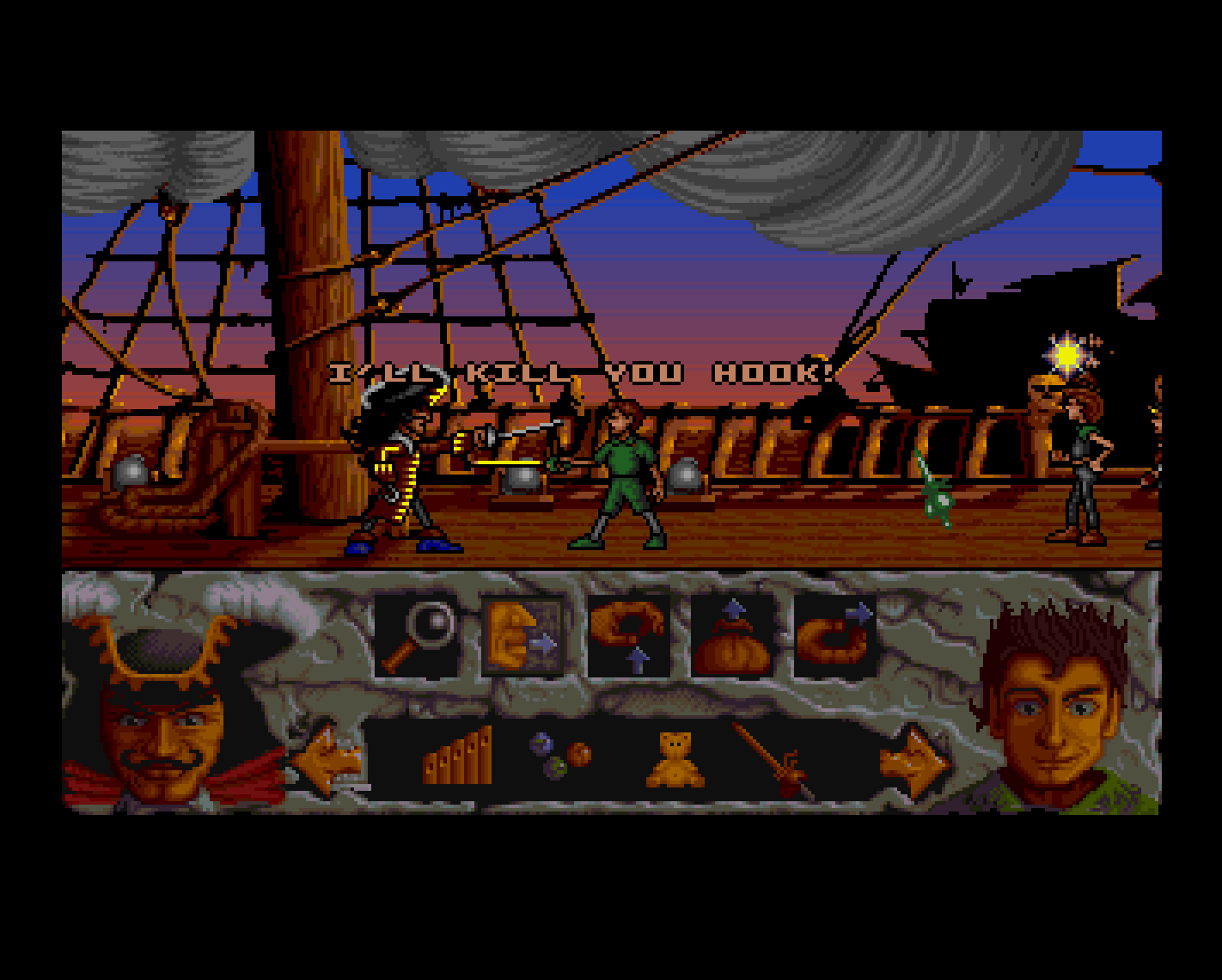 Once you remember you’re Peter Pan, a cutscene will play out and you’ll fly back to Hook’s ship to challenge him to a duel. This plays out similar to Monkey Island’s insult sword fighting, but with much lower stakes.
