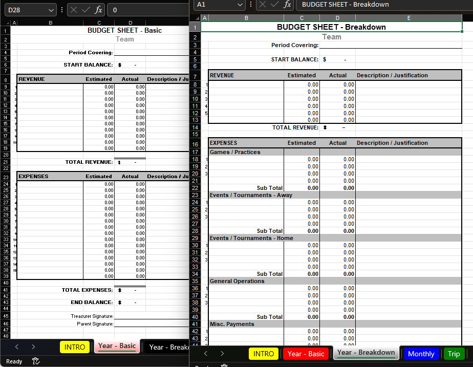Most of the information can be copied from previous seasons, but since prices are subject to change year over year you want to always estimate high. For example, if you paid $30K the previous year you may want to bump that to $34K this year (just in case). Always try to estimate a bit high, as he parents on the team have to pay for the season and it’s easier to refund extra money than it is to go back and ask for more 😉.