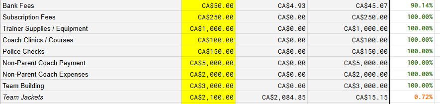 We’ll need to know how much money we’ve spent in each category as the season goes on - especially if/when we go over.