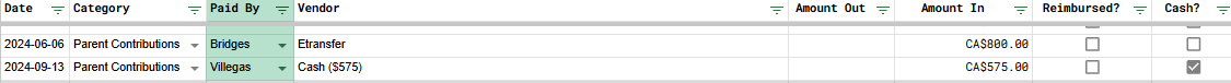 When Parent Contributions is selected, the assumption is you’re recording a direct payment towards fees. If you check off the checkbox under the Cash? column, it will be recorded not only as a parent contribution, but will help keep track of your cash float.