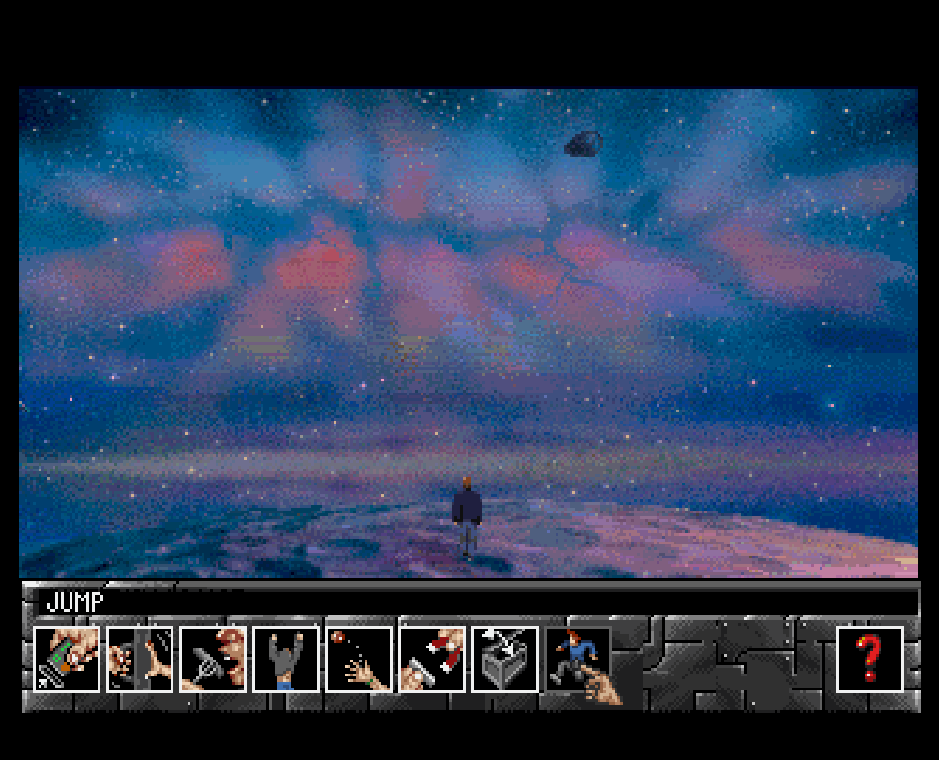 You are Boris Verne, a normal guy who has been cast in a parallel universe because of your uncle’s Virtual Dimension Inducer. There you’ll have to find the fabled lost star as well as a way to defeat the Golden King… This is a classic old-style adventure game with a point & click interface. It uses the Rotoscope system to manage game characters and scores really beautiful 256-colour graphic.1