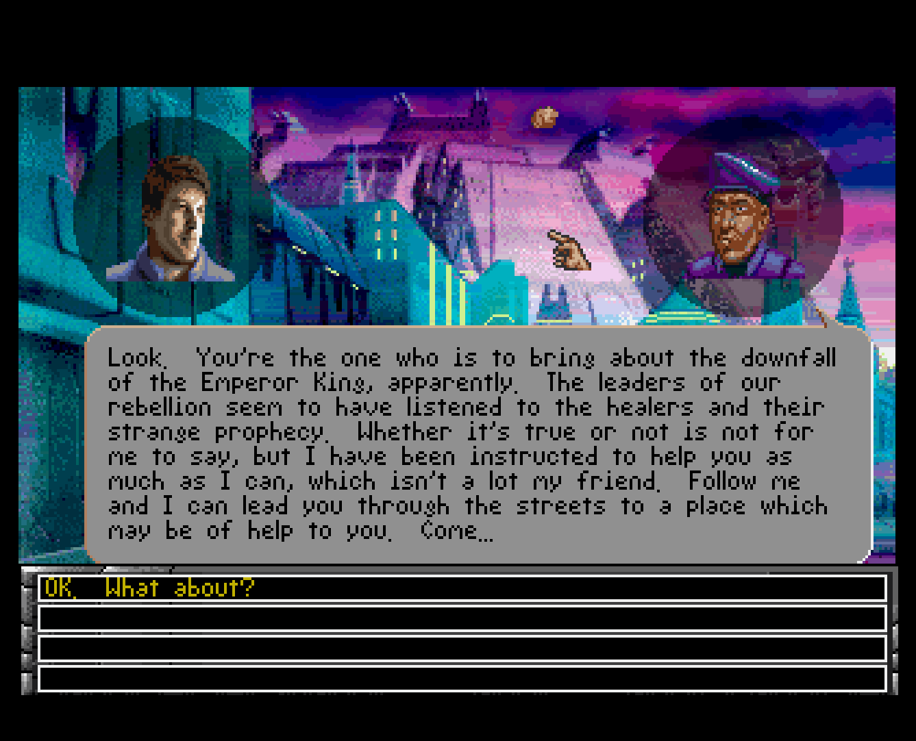 Like with any adventure game, save early and save often. Since I was playing the Amiga version, this mean having to eject the game disk, insert the save disk, save, eject and reinsert the game disk again. Modern gamers are so spoiled …