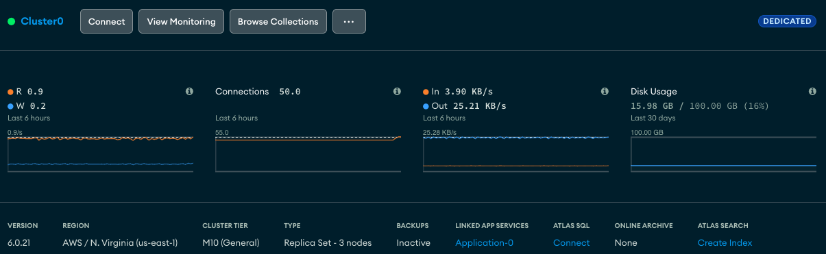 Our Worker will be using the MongoDB Node.js driver to connect to the provisioned Atlas cluster using a connection string stored as an environment variable.
