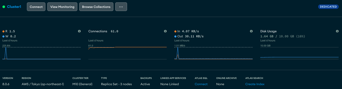 Just for comparison sake since Atlas offers clusters in most AWS regions, I spun one up in ap-northeast-1 and updated the connection string in my worker to see how this might impact the round trip time of an operation.