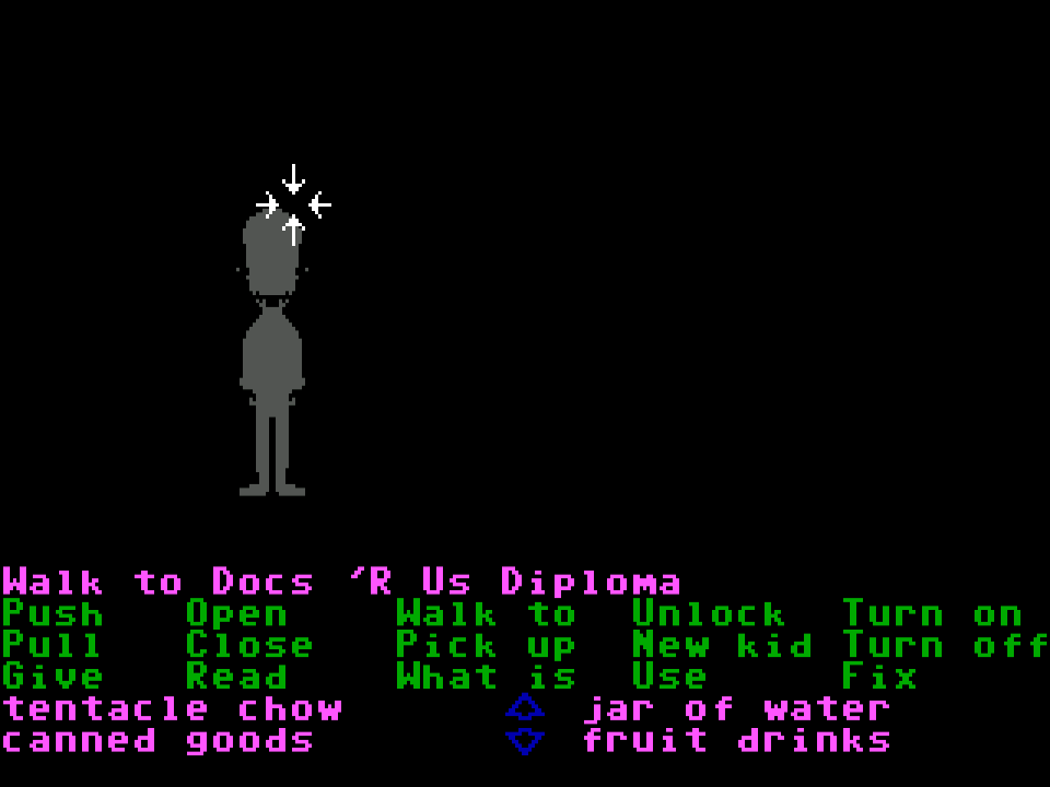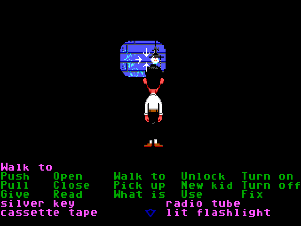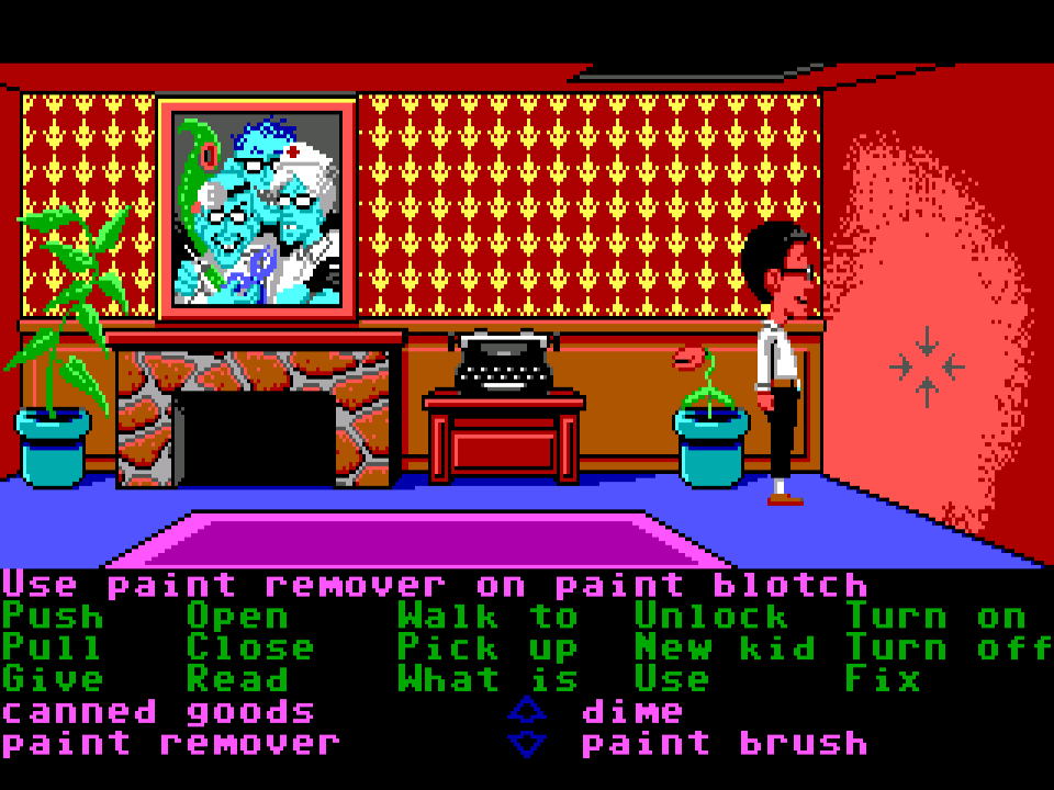 Future games like Day of the Tentacle would refine the verb list and condense multiple verbs into one, but given Maniac Mansion set the tone for these future games, the lesser used verbs like FIX and TURN OFF don’t really get in your way or detract from the experience.