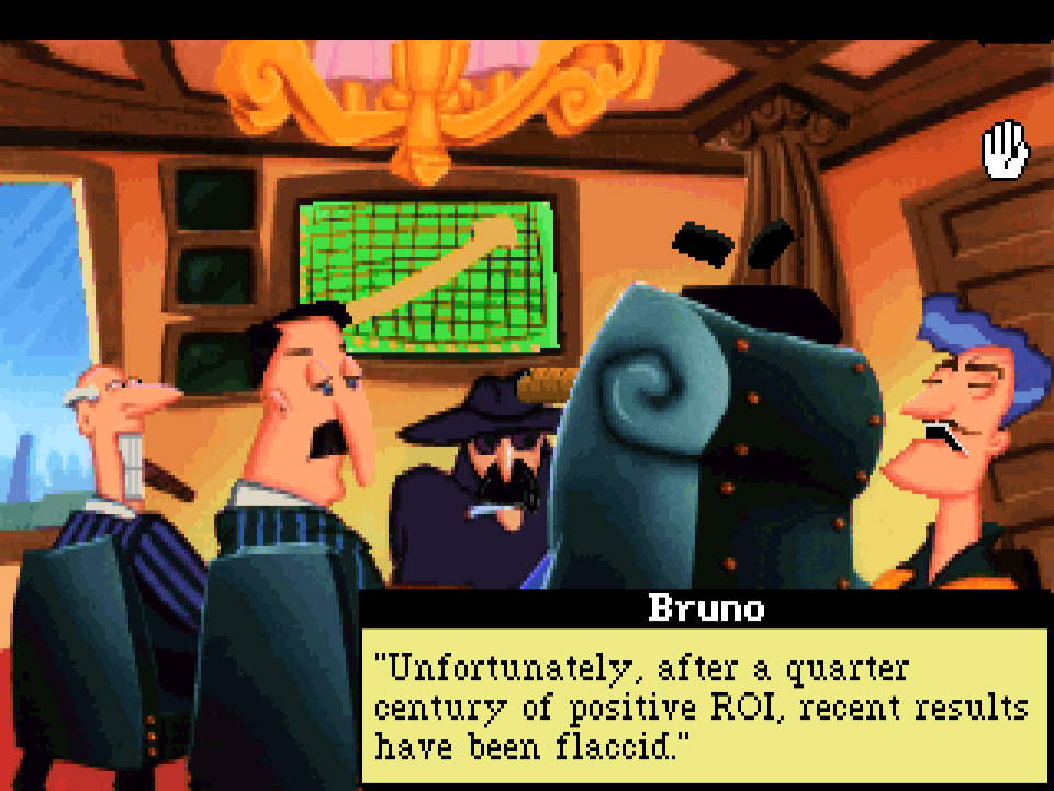 [by skipping directly to LSL5] Suddenly I was completely freed from the restraints of the Larry 3 ending. I could have the new game begin anywhere. The idea was wacky, silly, dumb in a perfect “Larry-esque” way. And, it solved the “mind share” problem–how to grab people’s attention and make them think about the next Larry game and had they missed something?